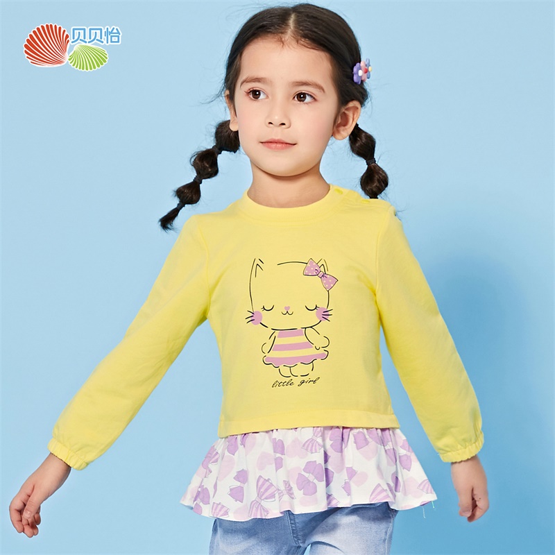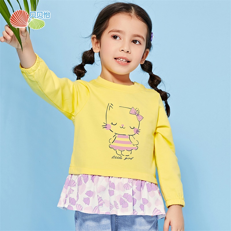 贝贝怡女童秋冬保暖纯棉上衣2023新款 套头卫衣 宝宝外穿洋气打底衫