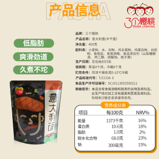 三个樱桃意大利面低脂主食非进口意面家用意粉袋装 全小麦生鲜面条
