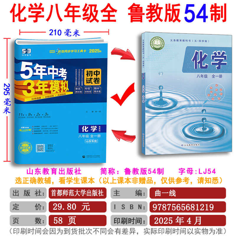 期中期末卷曲一线 五四制2025秋 53初中单元 8年级五年中考三年模拟同步练习试卷 5年中考3年模拟 初中试卷化学八年级全一册鲁教版