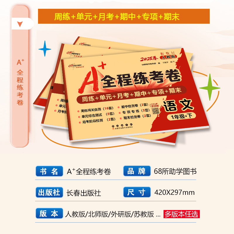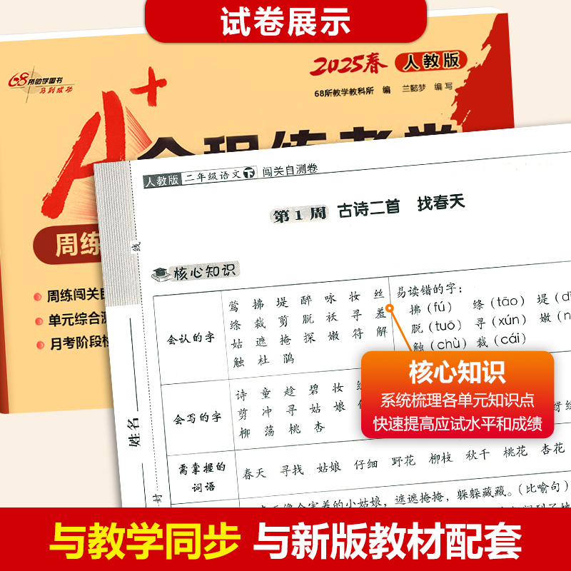全程练考卷二年级语文数学下册人教版 同步周练单元 全程练考卷小学2年级下人教版 月考期中专项期末测试卷68所助学图书 2025春A