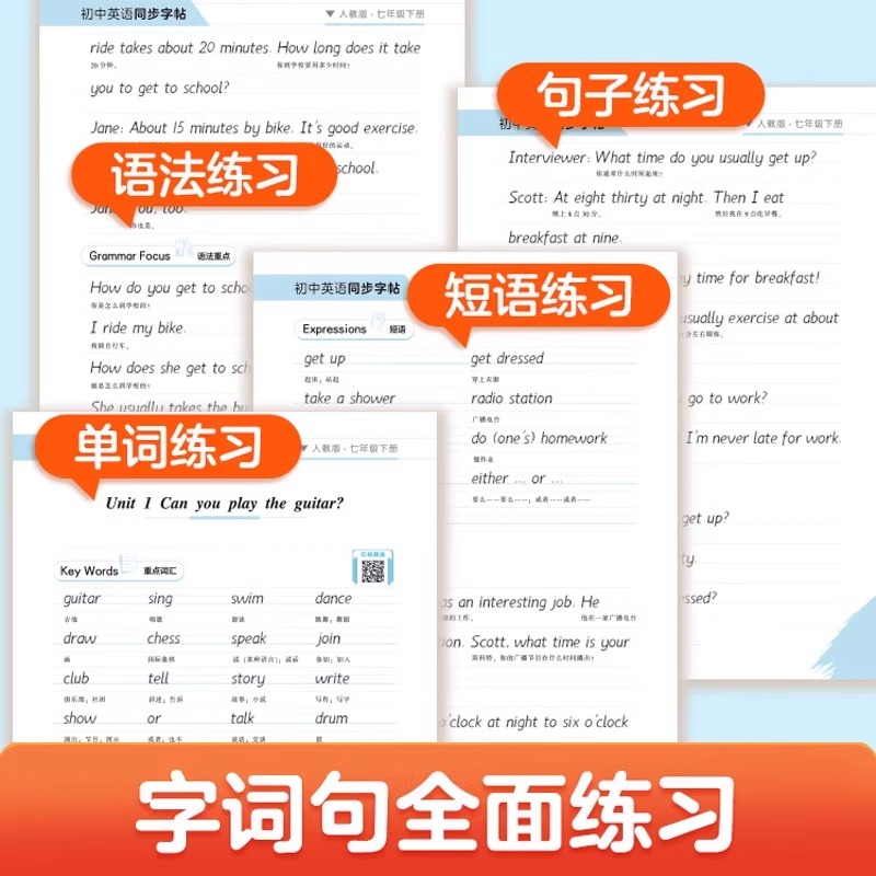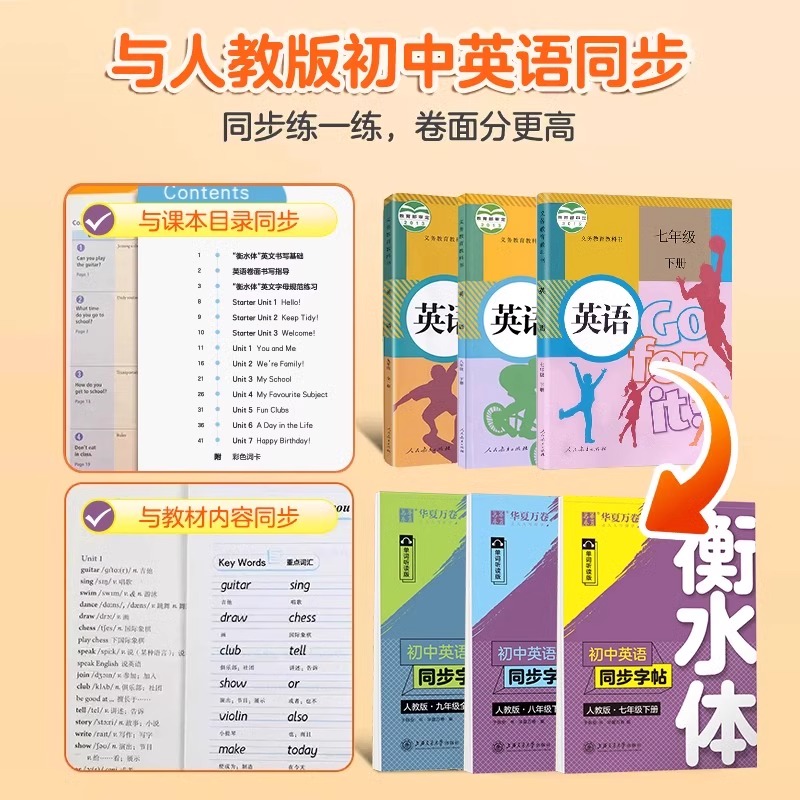 2025衡水体初中英语同步字帖7年级上册人教版 RJ英文练字帖临摹初中衡体七八九年级上下册衡水体初中生字帖教材同步英语单词字帖