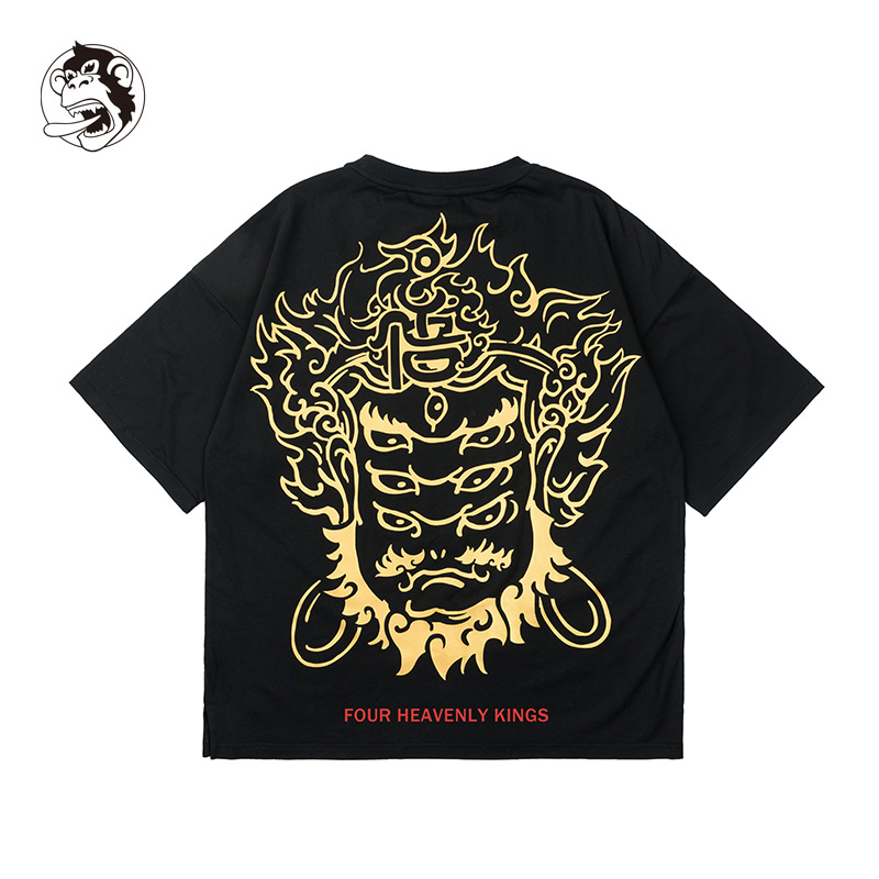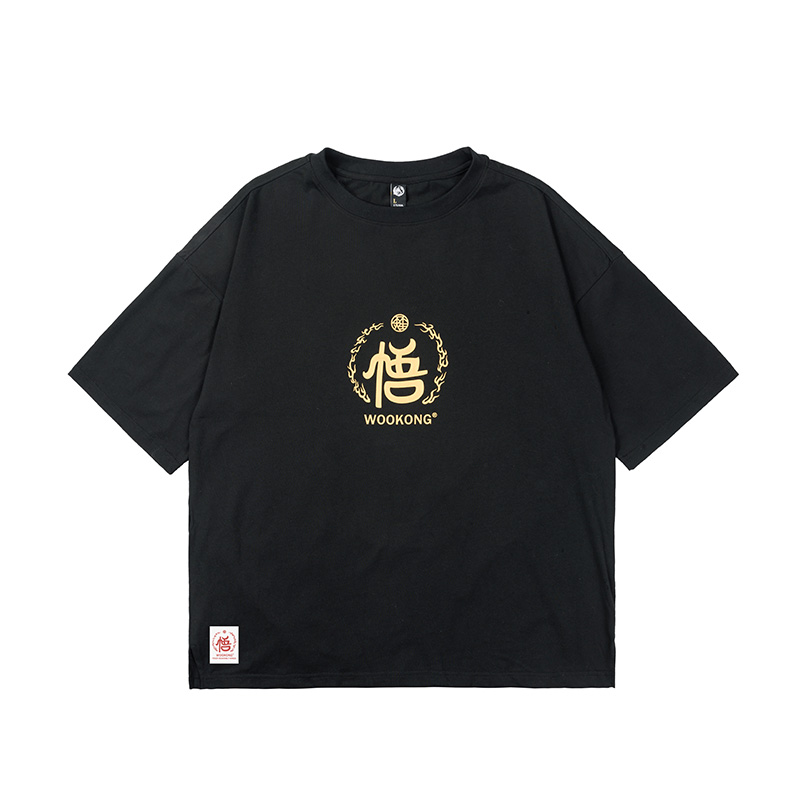 WOOKONG悟空广目天王原创金色印花全棉T恤男士 国潮 女落肩宽松短袖