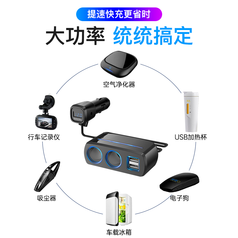舜威车载点烟器延长线充电器汽车12 24V通用插头转换器插座