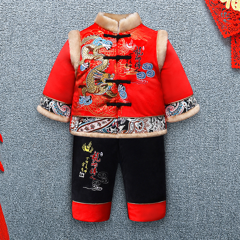 新年 套装 男宝宝婴儿服喜庆过年拜年衣服男童2一1周岁唐装 男孩冬季