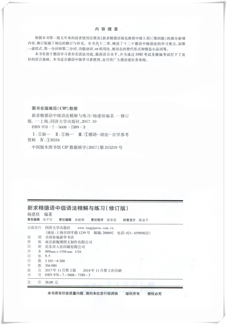 大学德语书籍 德语语法训练 德语培训 德语强化教程中级配套练习DSH考试及德福考试参考资料 新求精德语中级语法精解与练习修订版