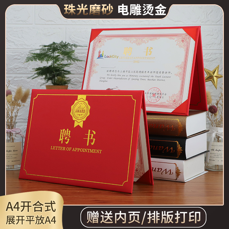 聘用书聘请书任命书证书烫金聘任书封面外壳定做定制LOGO内芯内页 创意磨砂珠光面红色蓝色横款 聘书横式 A4欧式