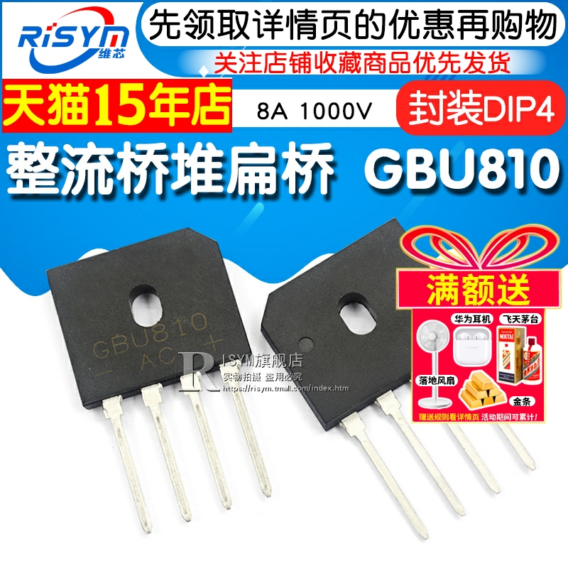 GBU810 整流桥堆 DIP 整流器 8A1000V 扁桥桥堆