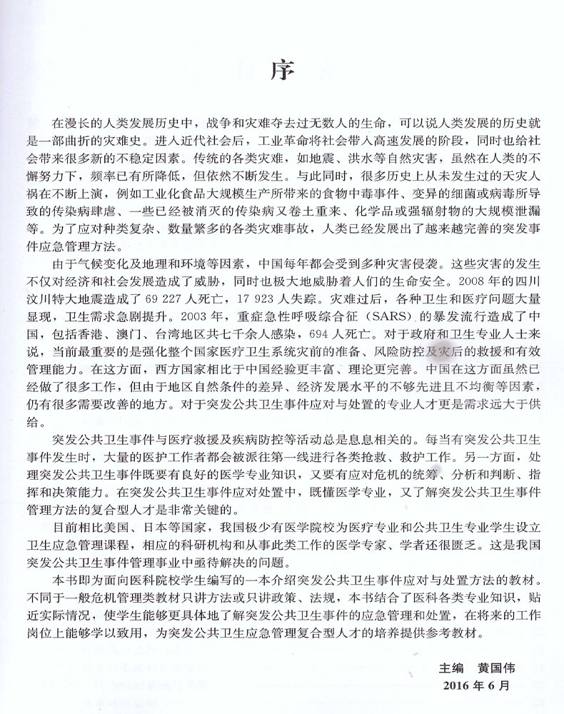 突发公共卫生事件应对与处置 北京大学医学出版 本科 姜凡晓主编 社 黄国伟 现货