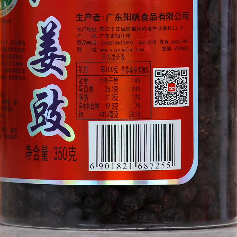 阳帆牌阳江姜豉350g广东阳光特产豆鼓原味黑干豆豉自制纯姜汁酱A8