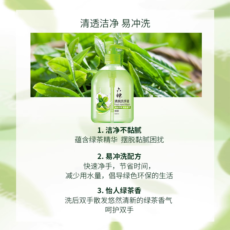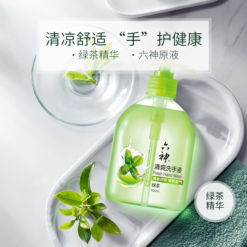 六神绿茶洗手液清爽型洗手液家用护手易冲洗500ml 3瓶