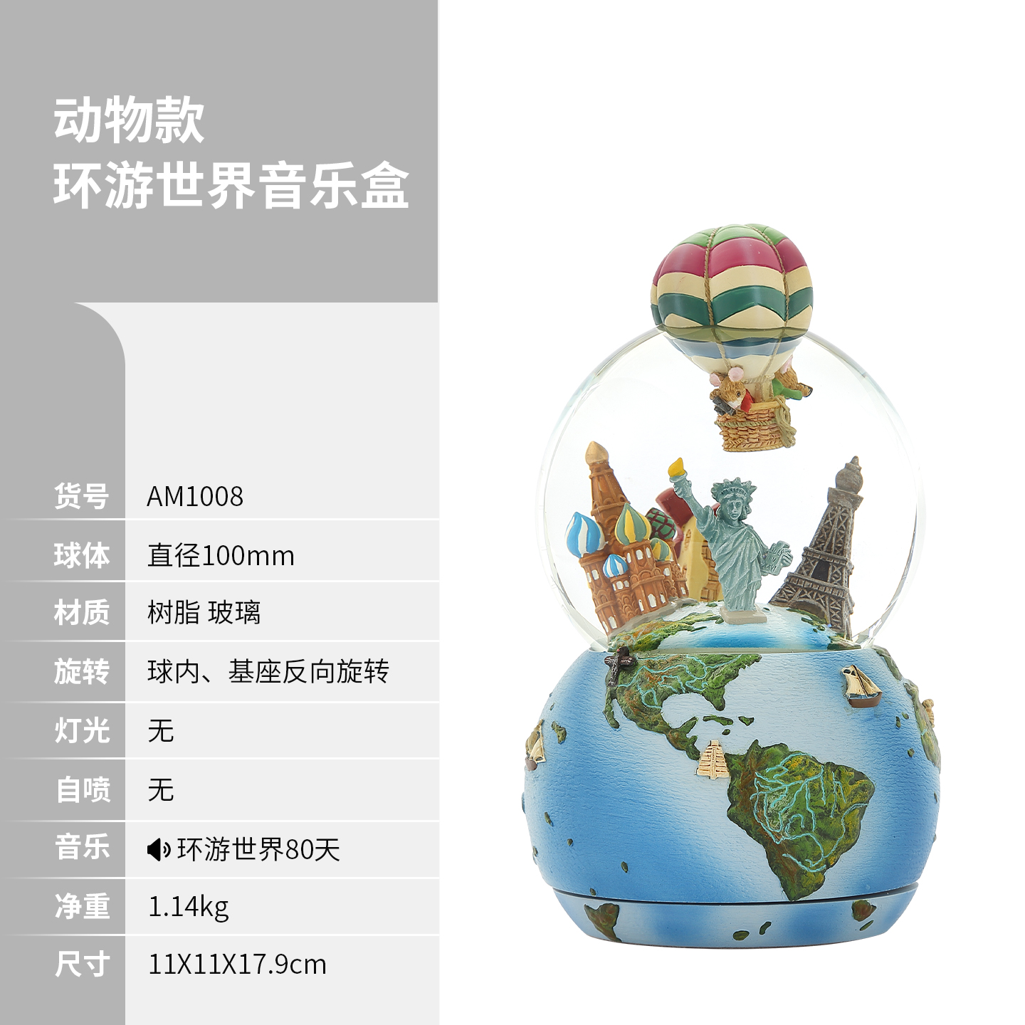 JARLL赞尔环游世界水晶球音乐盒高级感八音盒送男生同学谢师礼物
