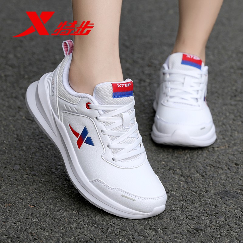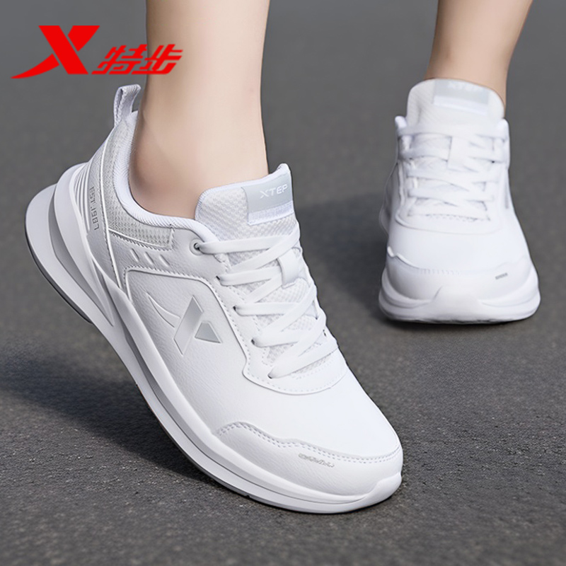 皮面运动鞋 老爹鞋 2025新款 正品 子 春秋黑色加绒旗舰店女款 特步女鞋