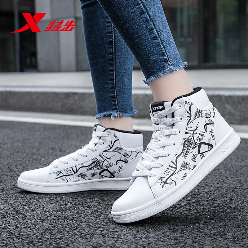 男鞋 子软弹平底鞋 厚底增高情侣休闲鞋 女鞋 革面 运动鞋 特步秋冬板鞋