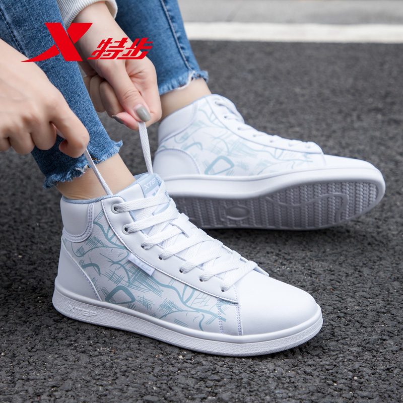 革面保暖厚底时尚 运动鞋 平底鞋 板鞋 子 女款 秋季 女鞋 特步男鞋 休闲鞋