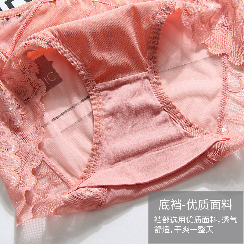 提臀无痕透气女士三角内裤 收腹 火辣 女网纱大码 性感中腰蕾丝内裤