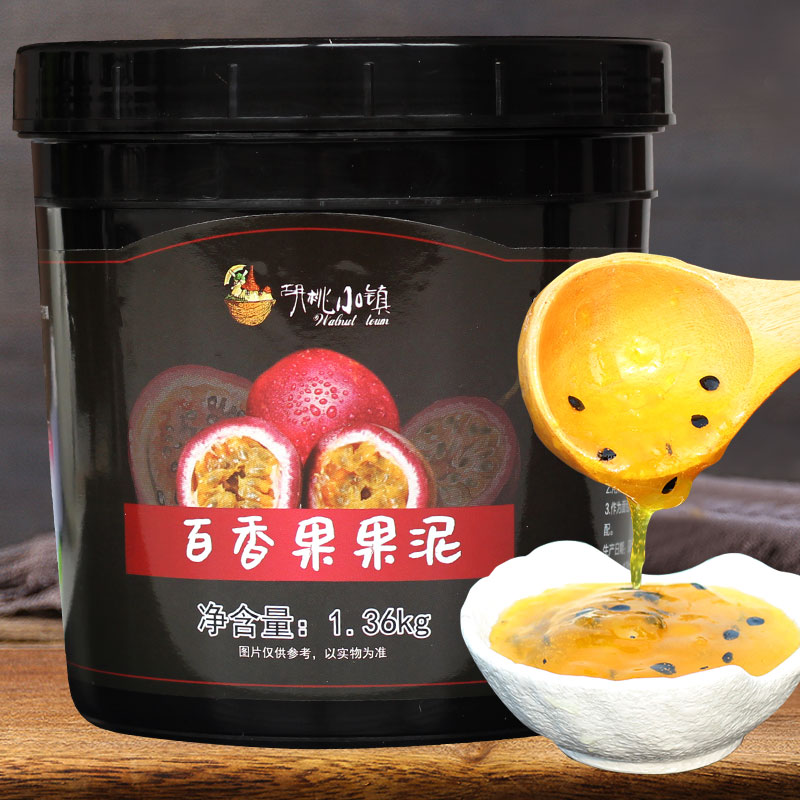 小镇百香果果泥1.36kg 浓缩果粒果酱烘焙冰淇淋甜品原料批发