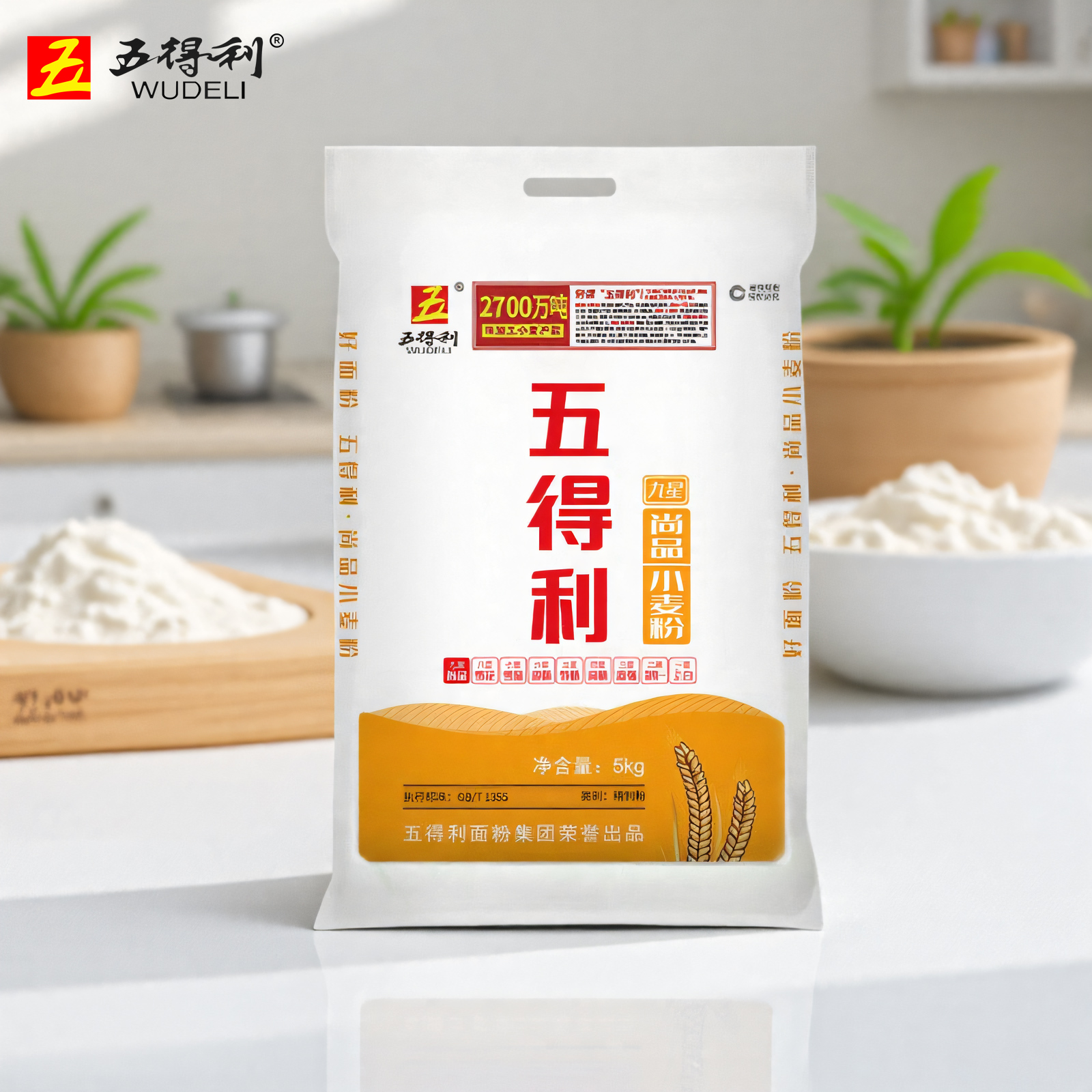 五得利面粉九星尚品5kg小麦粉中筋家用10斤白面包子饺子馒头通用