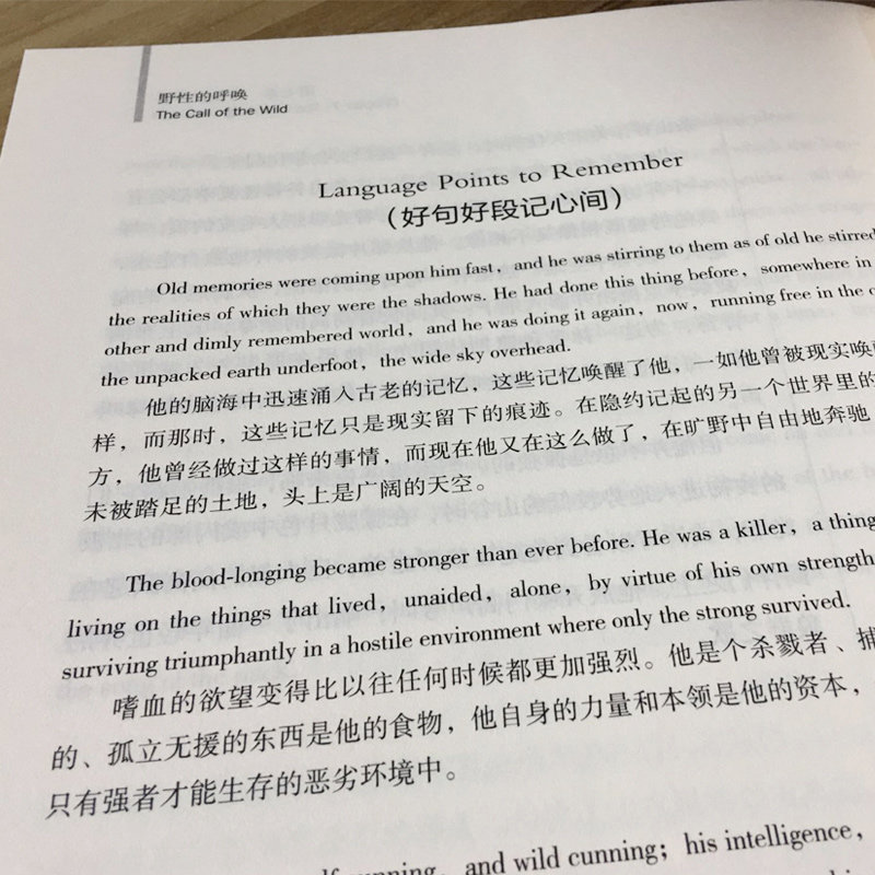 中文版 中英文双语小说读物 畅销文学小说 呼唤 学生课外阅读图书 世界文学名著原著 英文原版 英汉对照名著图书 野性 杰克伦敦