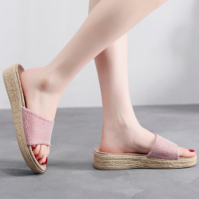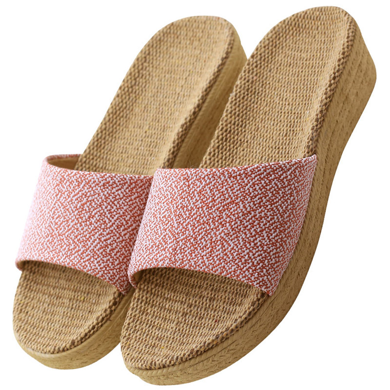 女夏韩式 高跟室内情侣拖鞋 防滑 厚底坡跟家用居家亚麻拖鞋 2022新款