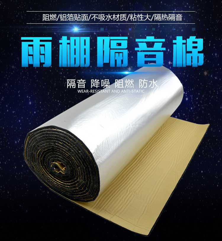 自粘铁皮雨棚隔音棉彩钢屋顶静音垫防水消音棉降噪室外防雨隔音垫