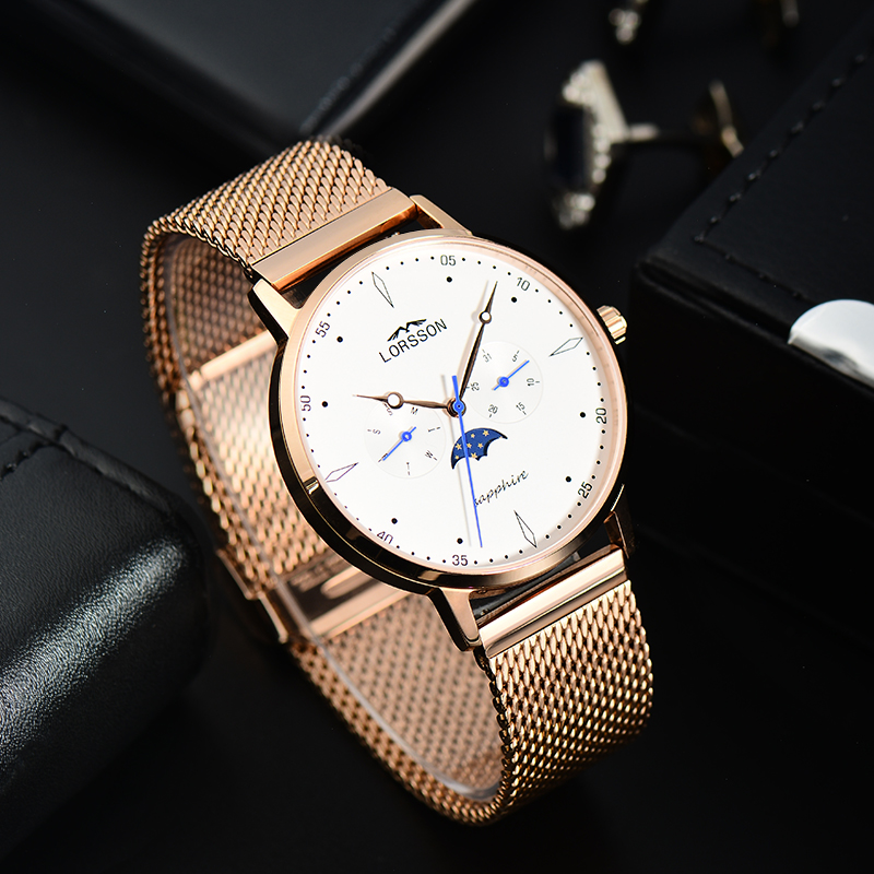 罗臣手表德国品牌男士 月相石英表夜光男表潮官方进口名牌原装