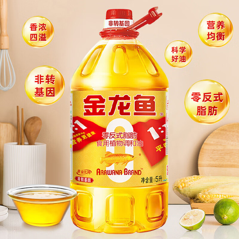 健康好油 非转基因 金龙鱼黄金比例零反式 脂肪食用植物调和油5L