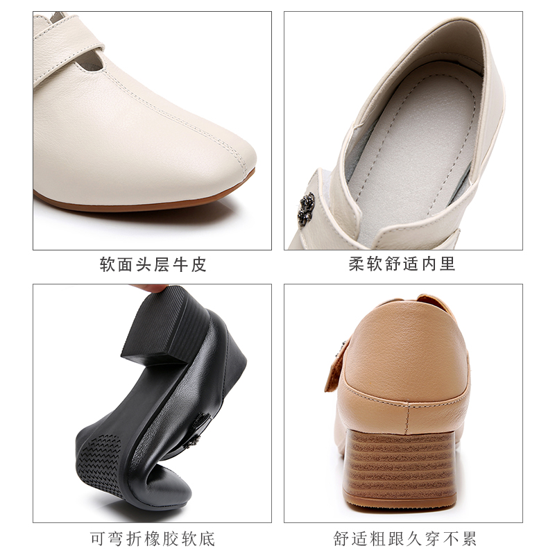 女中跟百搭软底舒适圆头真皮女鞋 2025新款 粗跟单鞋 软皮鞋 子 春秋鞋