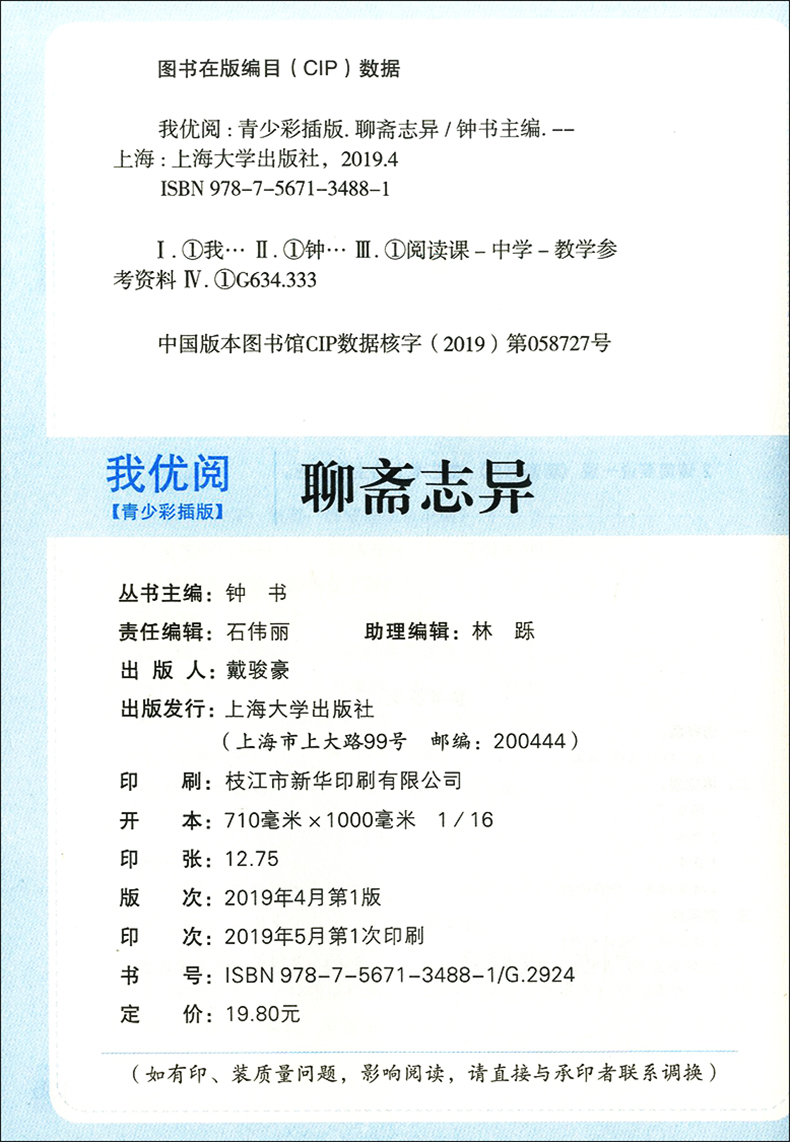 中小学生三四五六七八九年级课外阅读书目上海大学出版 聊斋志异 阅读 我优阅无障碍阅读青少彩插版 社 蒲松龄著