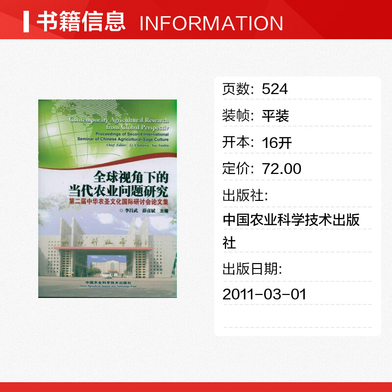 当代农业问题研究 主编 第二届中华农圣文化国际研讨会论文集 薛彦斌 农业基础科学专业科技 李昌武 全球视角下