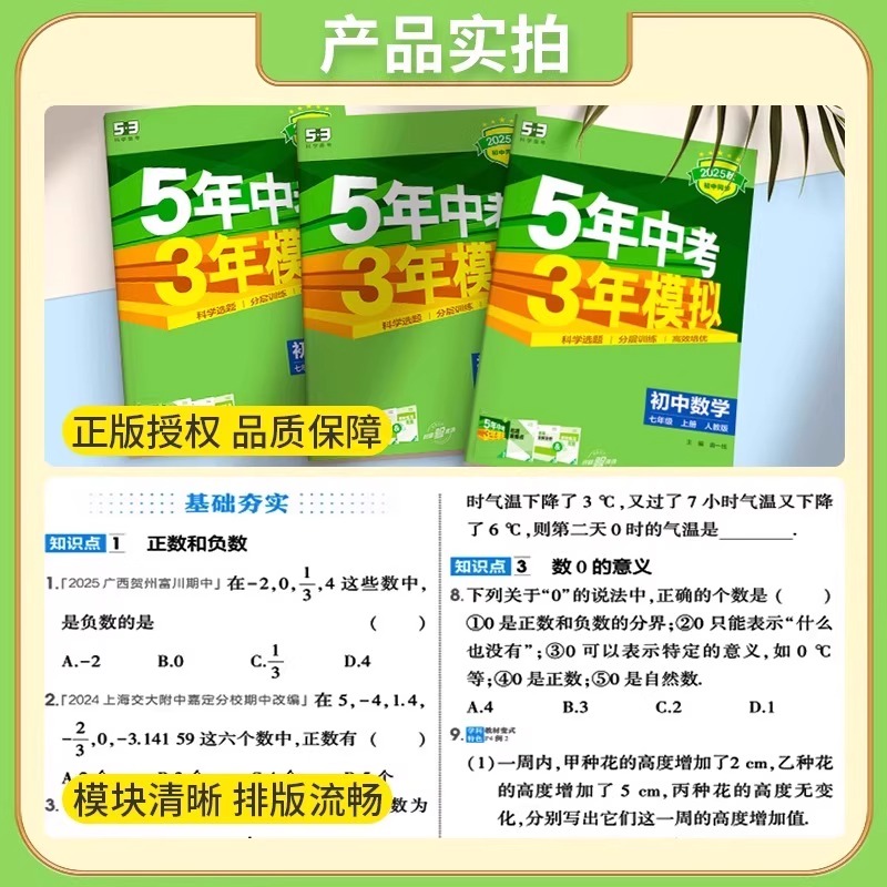 2025秋 初中五三练习册5年中考53天天练初一7七上下 初中五年中考三年模拟七年级上下册语文数学英语地理生物政治历史人教版