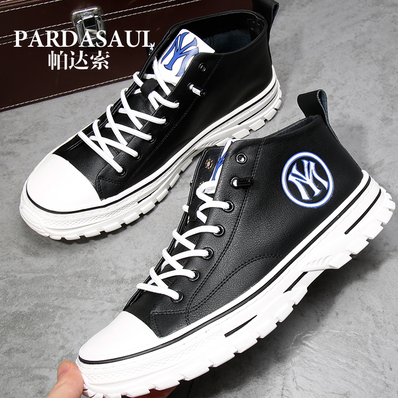 男鞋 子学生运动鞋 新款 皮面鞋 秋冬高帮休闲鞋 电池熊猫鸿星尔克板鞋