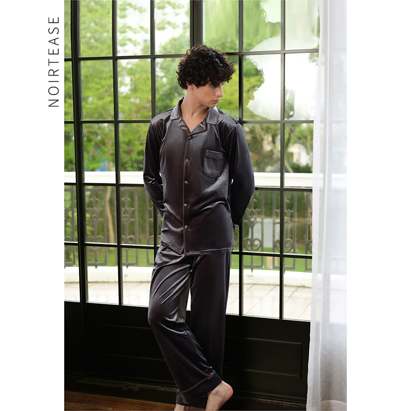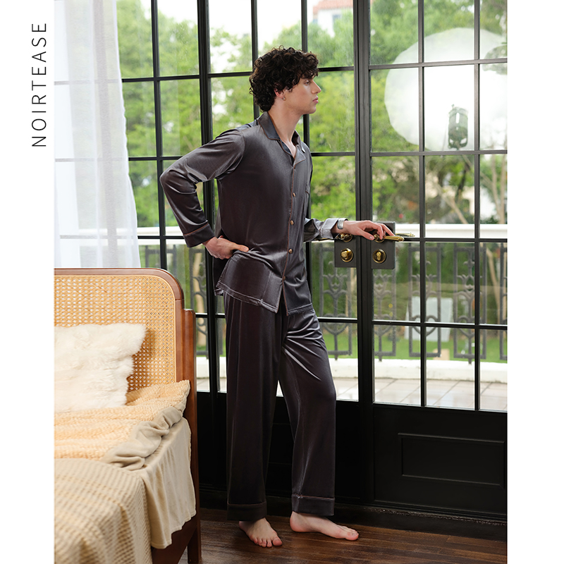 春秋薄款 家居服套装 长袖 两件套大码 金丝绒睡衣冬季 NoirTease男士