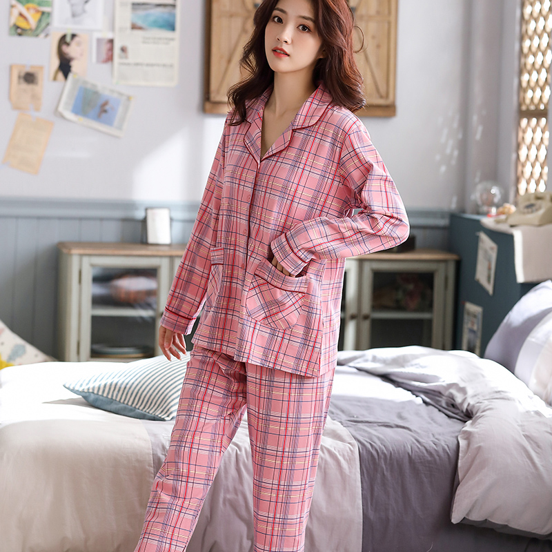 卡通可外穿带胸垫家居服套装 猫人纯棉睡衣女春秋季 长袖 2025新款 款