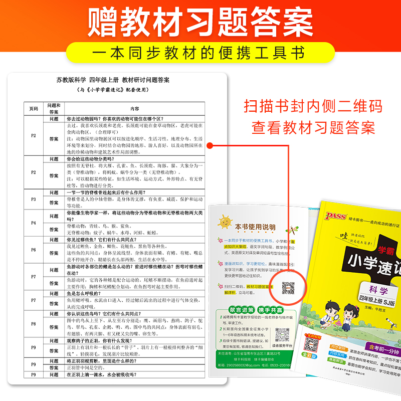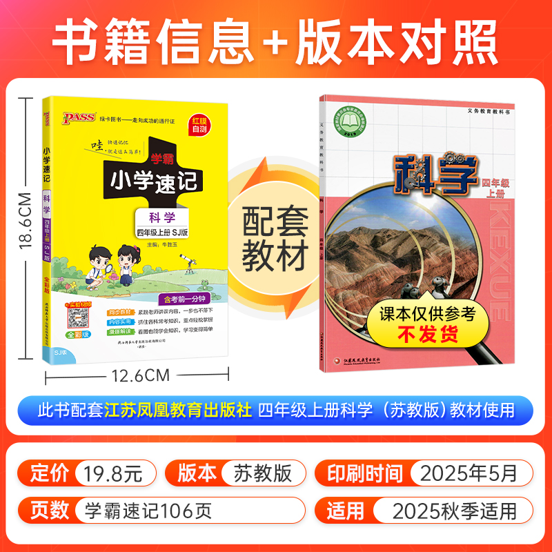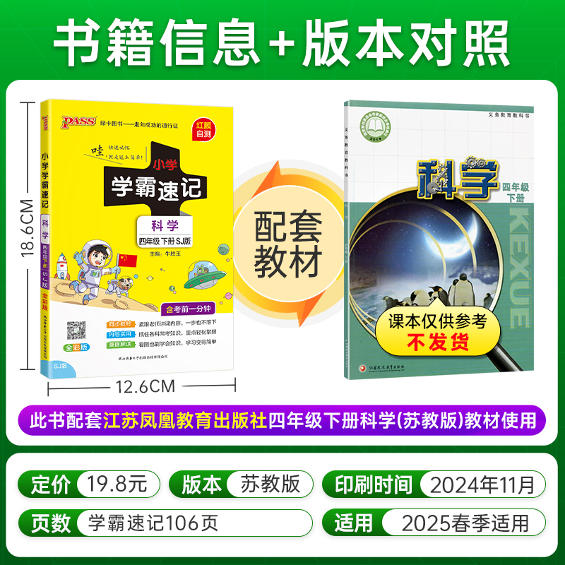 科学 小学学霸速记四年级科学知识点汇总速查4上册下册学生课件实验总复习知识点提要同步解读考试前背诵PASS绿卡图书 苏教版