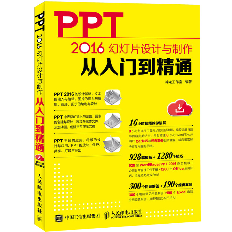 ppt幻灯片设计制作模板素材书 office办公软件应用教材书 PowerPoint2016幻灯片设计与制作从入门到通 ppt2016视频教程书籍