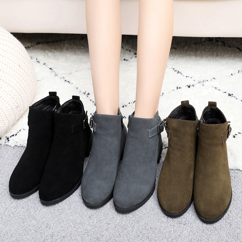 百丽复古时装 加绒显瘦厚底粗高跟短靴子E5S1DDD5预 超软羊皮靴新款