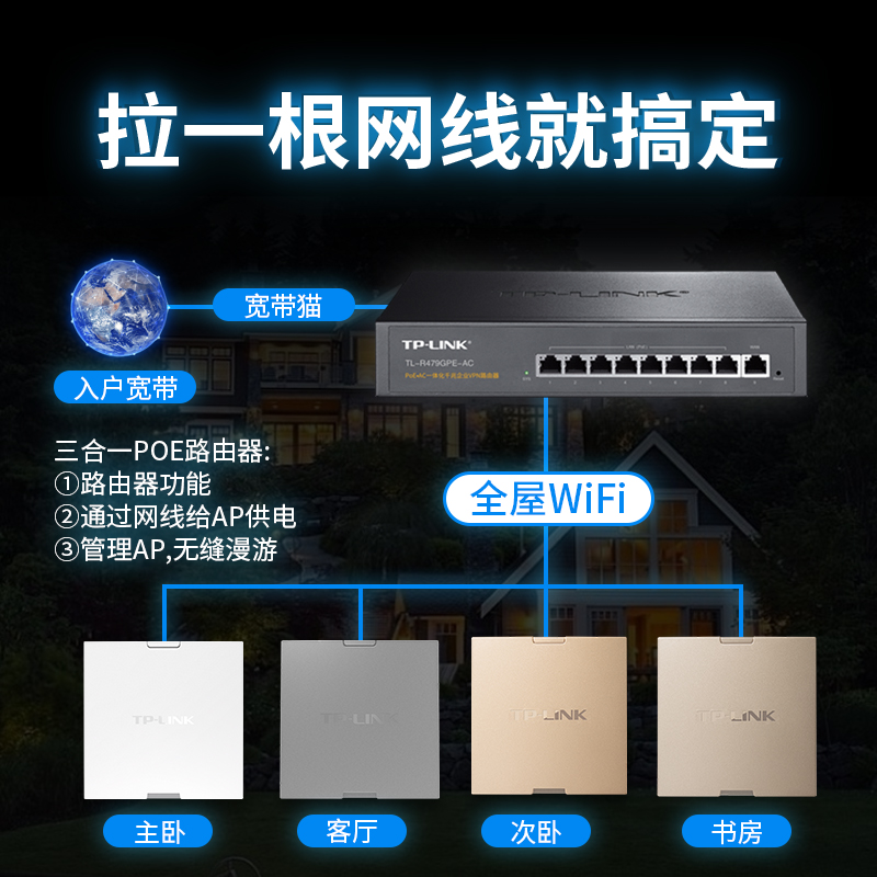 普联tplink无线POE一体化路由器千兆AC管理一体机带供电交换机三合一家用4口8口AP面板吸顶路由器AC AP套装