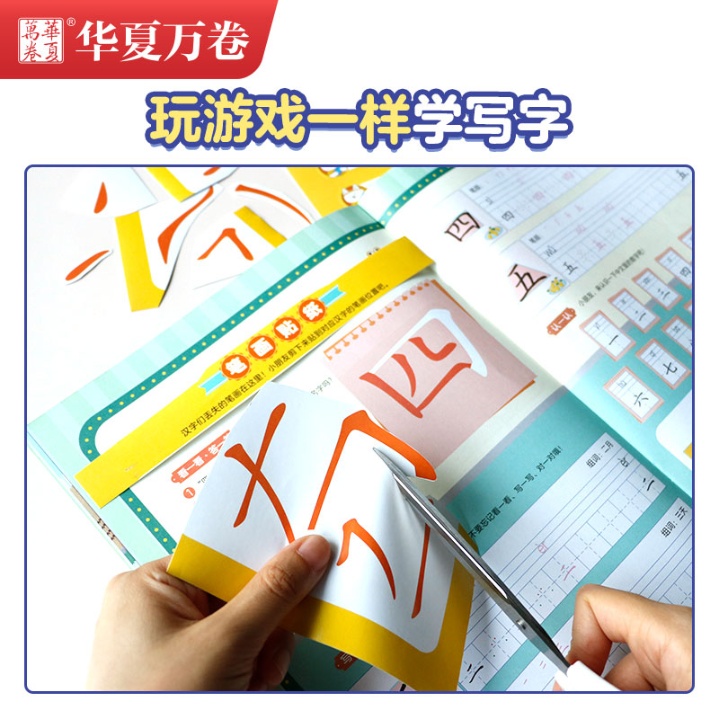 幼小衔接启蒙字帖带卡通贴纸练习本习字本 6岁汉字描红本幼儿园大班儿童写字本控笔训练 小花卷少儿3步学写字4阶汉字