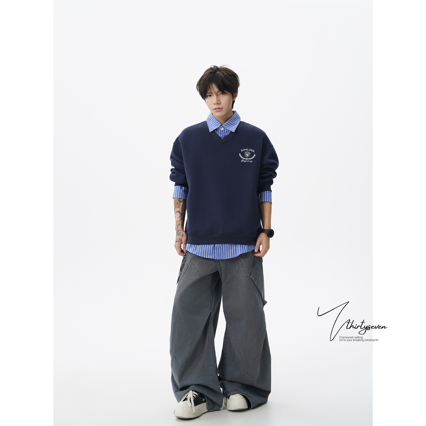 508269 韩系可拆披肩宽松刺绣上衣女装 三福无帽卫衣女2025新款 秋季