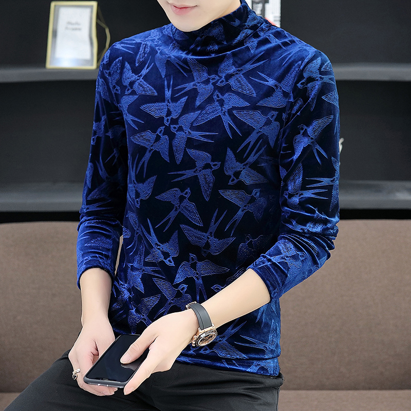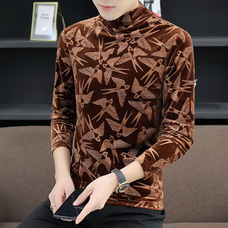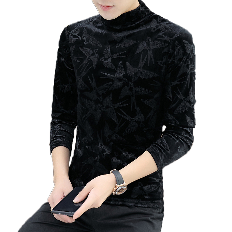 半高领打底衫 T恤春秋冬季 潮流加绒潮牌保暖上衣服 金丝绒长袖 男士