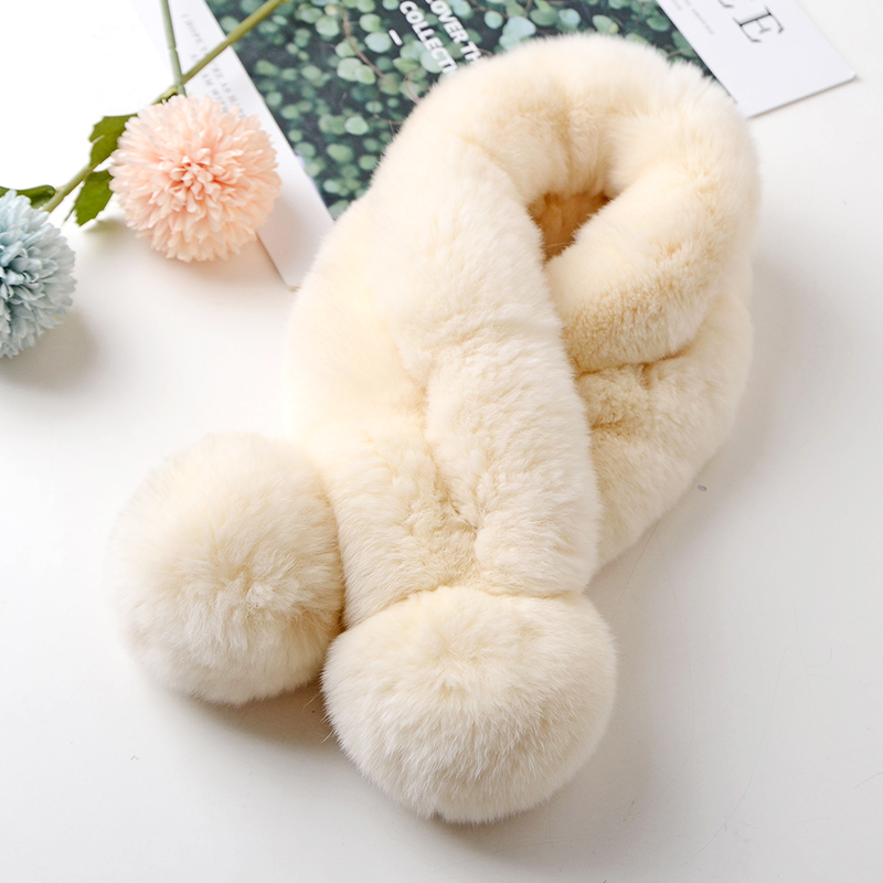韩版 保暖真獭兔毛围脖纯色儿童通用加厚毛 百搭濑兔毛围巾女秋冬季