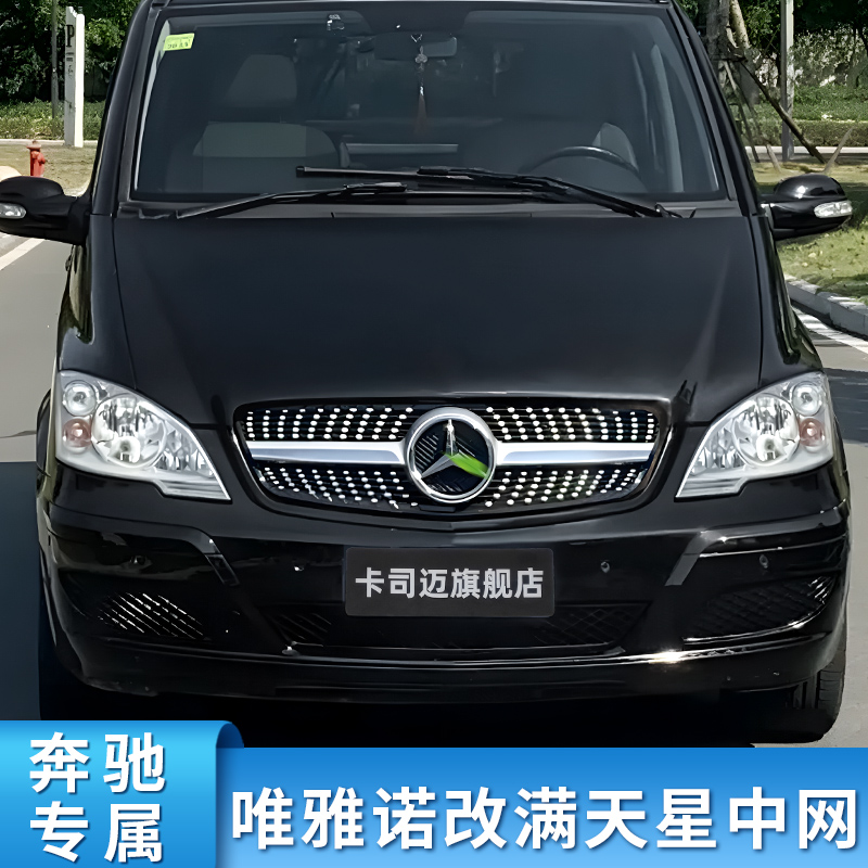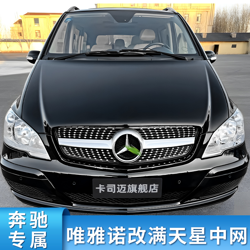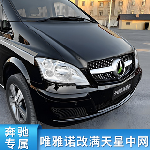 适用奔驰唯雅诺V级V260L威霆满天星中网大标镜面前进气格栅水箱罩