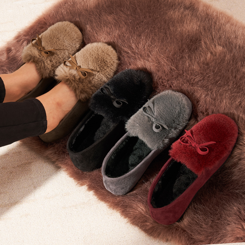 外穿室内家居防滑保暖毛绒绒包跟棉鞋 防水棉拖鞋 2025新款 冬季 女款