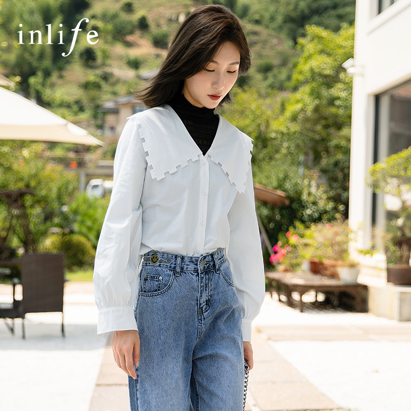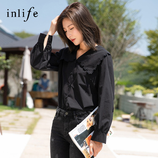 设计感中国风复古气质提花小衫 新中式 春季 女长袖 上衣 翻领盘扣衬衫