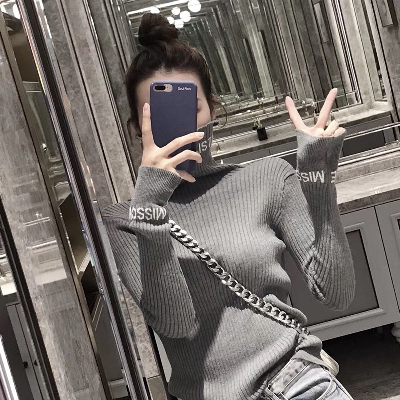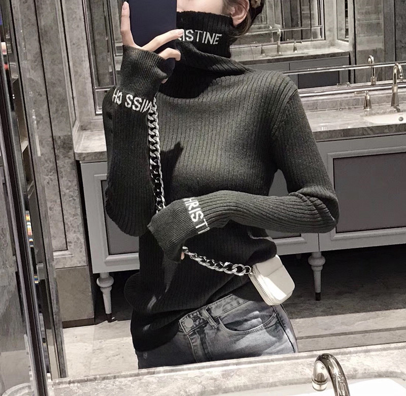 显瘦内搭字母保暖针织打底衫 高领毛衣女2025春秋复古修身 新款 韩版