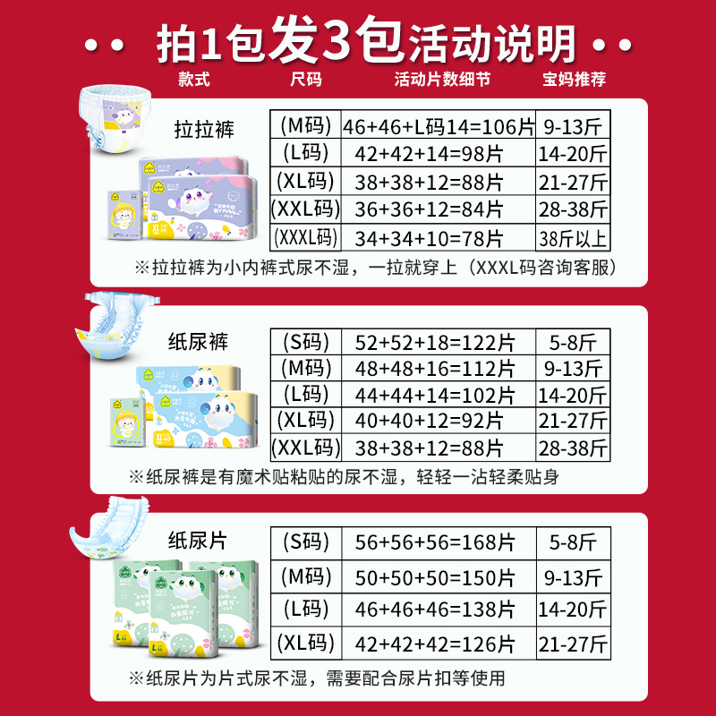 兔头妈妈lite纸尿裤 大吸量婴儿宝宝超薄透气干爽尿布尿不湿 拉拉裤