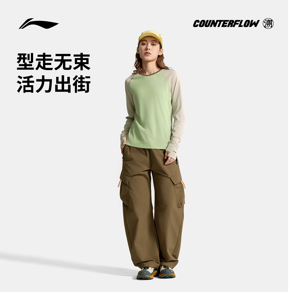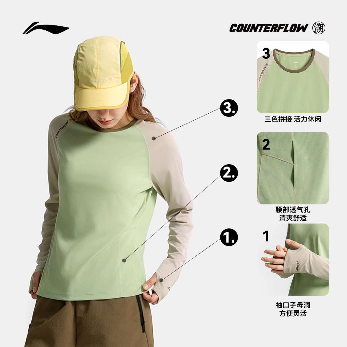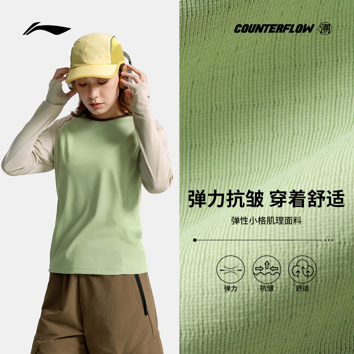 上衣运动衣透气针织运动服 T恤女士圆领夏季 李宁户外CF溯 长袖