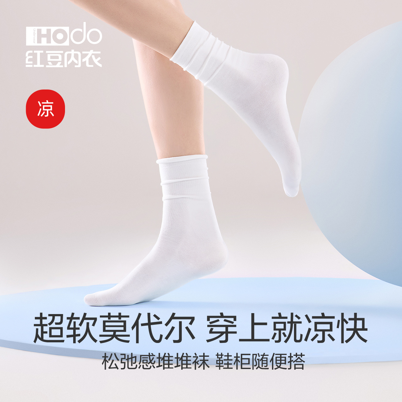 袜子女堆堆袜莫代尔中筒袜2025年春抑菌防臭透气白色长袜女士袜子
