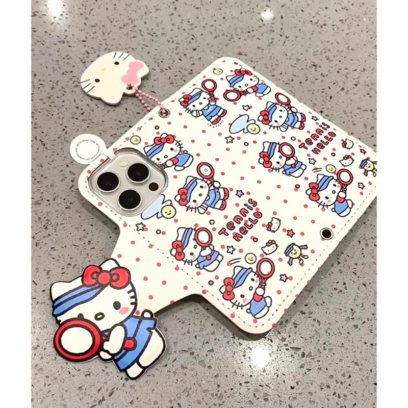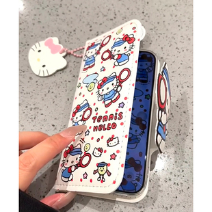 翻盖皮质卡通可爱Kitty猫适用苹果17promax手机壳iPhone17女新款 16带挂件15小众13日系16Pro防摔14pro保护套