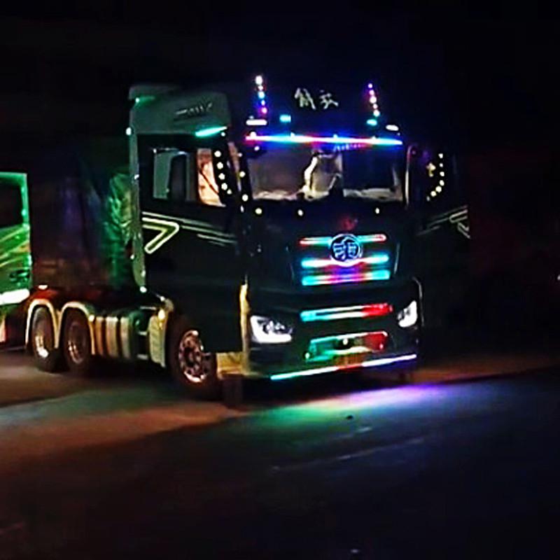 解放J7货车装 遮阳板中网导流罩七彩跑马流光霹雳游侠灯遥控 饰改装